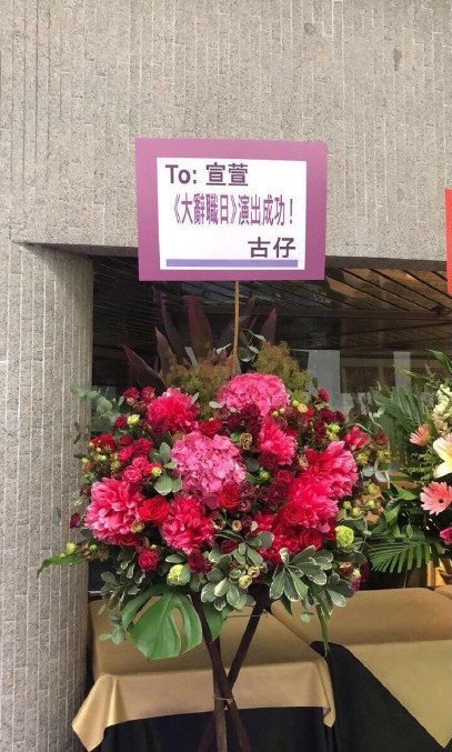 宣萱舞台剧演出时,古天乐送去的花篮,几乎全是象征爱情的玫瑰花。