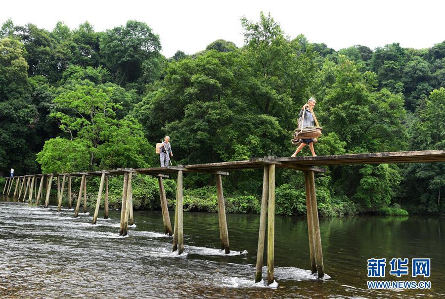 村民走过位于贵州省黎平县高屯街道上少寨村的红军桥(7月2日摄)。新华社记者 王思维 摄