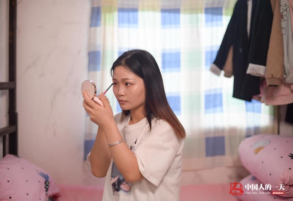 每天早上,程程会在自己的房间里化妆。平日里大大咧咧的她不喜欢浓妆艳抹,她觉得只需要简妆就好。化妆这门手艺也是在她这两年开始直播后才慢慢开始熟练起来。