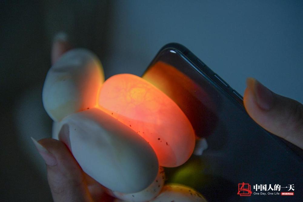 有时在蛇房里还能捡到蛇蛋。用光照射蛇蛋,隐约能看到红色的血丝。