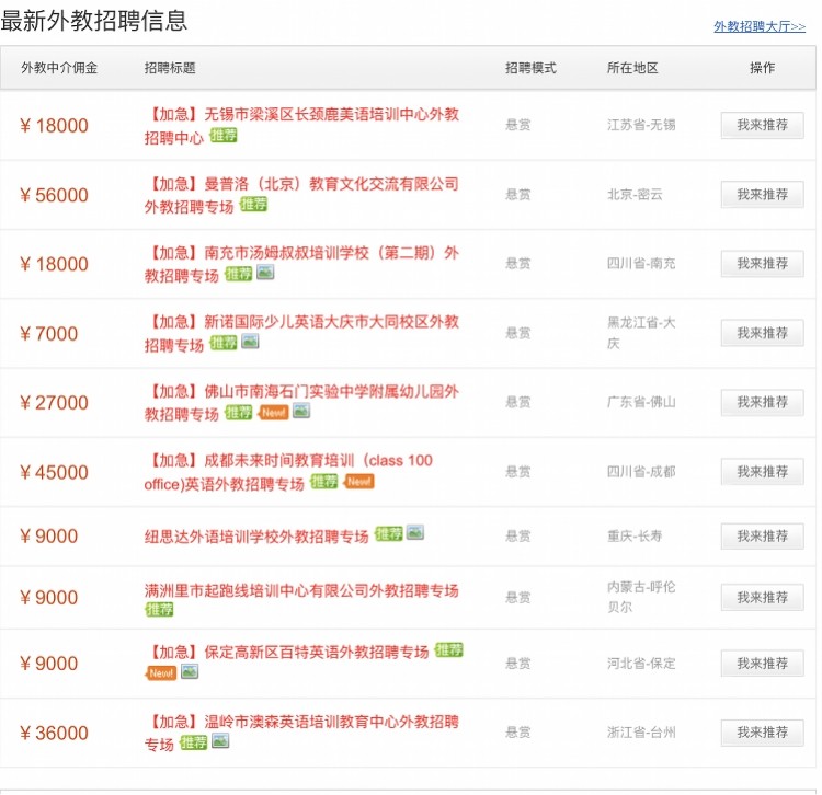 南都记者从外教中介服务机构“聘外易”上看到,各地多家教育培训发布外教招聘信息并注明“加急”,要求外教越快到岗越好。