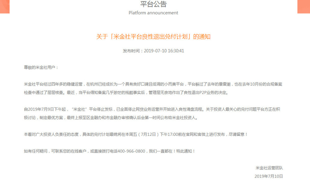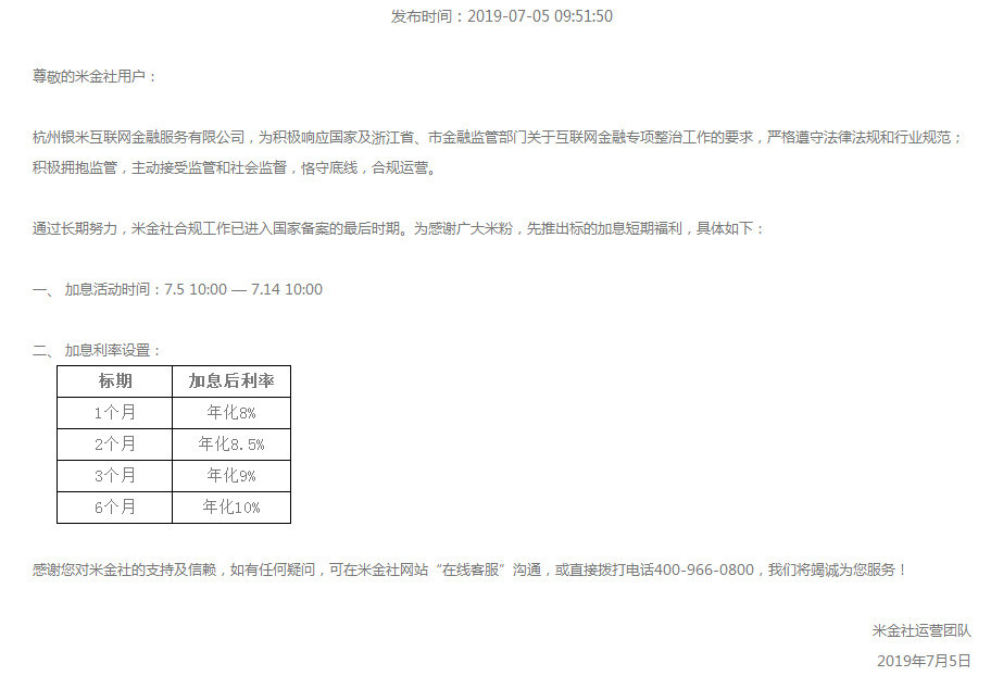 但另一方面,就在平台宣布退出前的7月5号,平台刚刚宣布了加息公告。退出是早有预谋,还是临时起意?我们不得而知。
