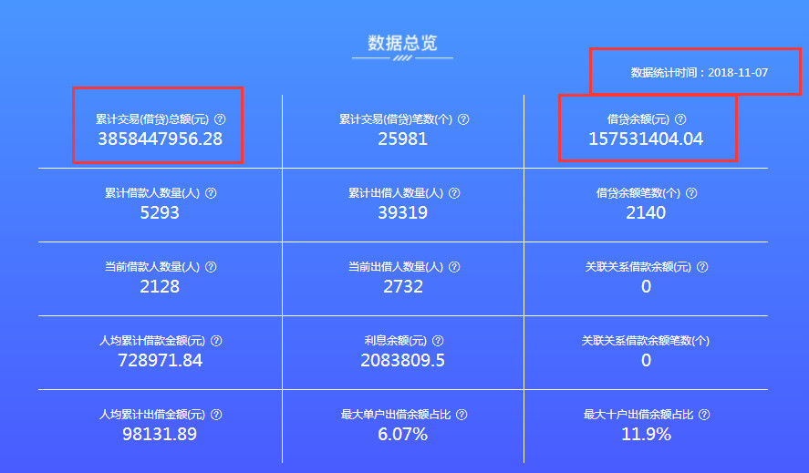 但在信披项目下,平台数据总览只更新到2018年11月,彼时平台交易总额为38.58亿元,待还余额1.57亿元,此后一直未及时更新平台运营数据。