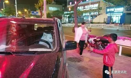 狗狗像模像样地坐在驾驶席里帮主人“看车”的画面,成了当天晚上街头一道独特的风景。