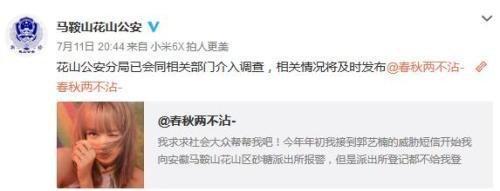 中新网客户端7月12日电 日前,一名女子在网上发文称“被他人长期骚扰,屡求助警方无果”,引发关注。对此,马鞍山市公安局花山区分局通过官方微博称,花山公安分局已会同相关部门介入调查,相关情况将及时发布。
