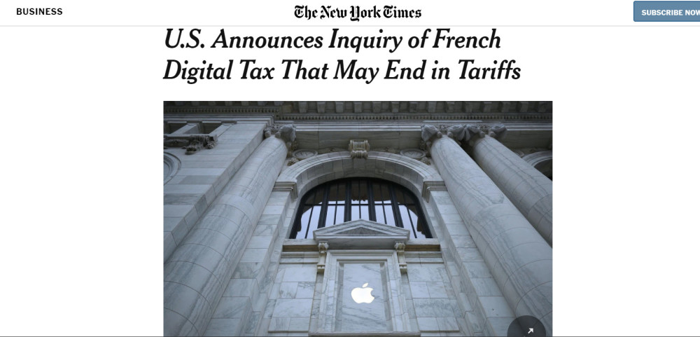而与德国杀鸡儆猴的做法不同,欧盟另一大国法国酝酿的是更为长久的反击。周四(7月11日)法国通过了征收数字税的法案,将矛头直接指向苹果、谷歌、Facebook和亚马逊等美国科技巨头,法国预计将对这些巨头每年征收5亿欧元(约合38.71亿元人民币)的税收。这无疑刺中了美国的痛点,极为不满的美国已经宣布将对这一数字法案进行调查。