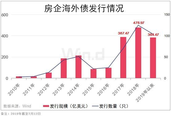 Wind统计显示,2019年以来,房企境内外合计发债规模已达6047亿元(国内3401.92亿元,海外2645.08亿元),超过2018年同期规模。