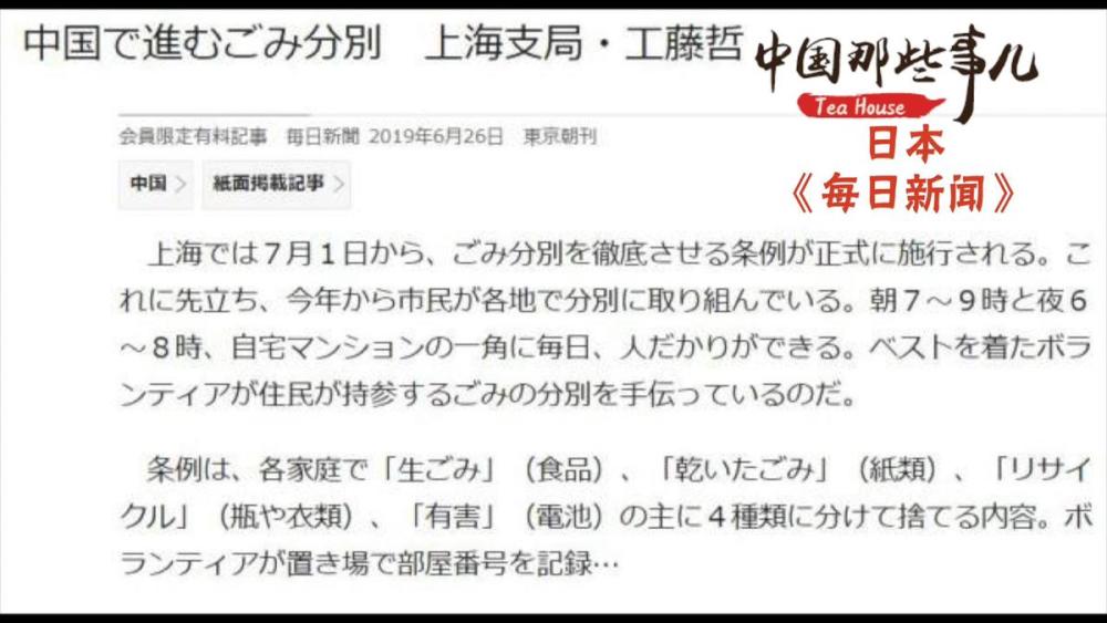 日本媒体认为,作为中国经济最发达的城市之一,上海此次实施有史以来最严格的垃圾分类新规,必将产生广泛的积极影响,有望成为中国各地学习借鉴的典范,并进一步提升人们的环保意识。