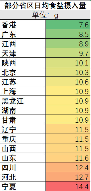 研究还指出,中国居民食盐摄入量存在南北差异。