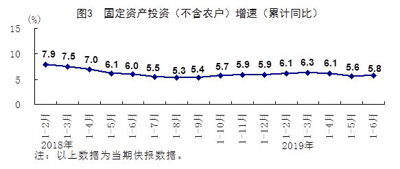 (2)根据季节调整模型自动修正结果,对近一年来各期国内生产总值、规模以上工业增加值、固定资产投资(不含农户)、社会消费品零售总额环比增速进行修订。修订结果及2019年二季度GDP环比数据、2019年6月份其他指标环比数据如下: