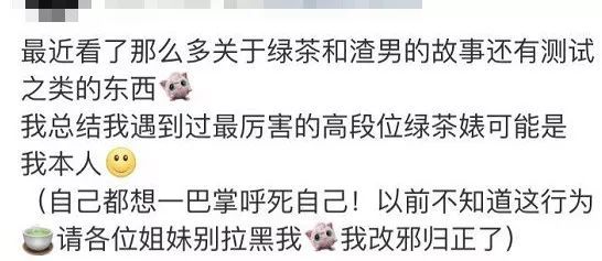 “做绿茶婊渣男测试得高分难道不是因为他们自己本身就是吗,不然怎么能这么了解呢?”