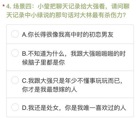 不难发现,那套刷屏的测试题其实出得挺尬,场景设置全都是很模式化地迎合长久以来大众认为“绿茶婊”和“接盘侠”之间应该有什么爱恨纠葛。