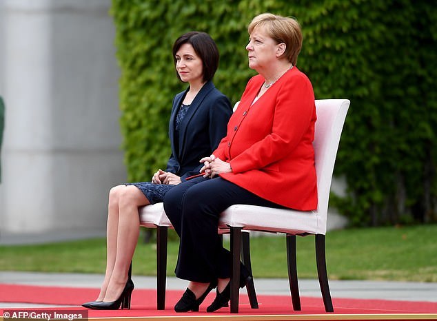 据《每日邮报》网站(dailymail)16日消息,默克尔当日在首都柏林以军礼欢迎摩尔多瓦总理玛亚·桑杜(Maia Sandu)来访,现场演奏国歌时,默克尔同桑杜全程坐在椅子上。本月11日,在迎接丹麦首相弗雷德里克森(Mette Frederiksen)的欢迎仪式上,默克尔被拍到同来宾坐着检阅仪仗队。