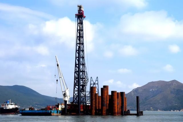 建设者首创“石头上种树”,海浪中搭台。借助“海底扫描”技术,摸清海底地图。再利用打桩船自身的稳定性,将钢管桩放到预定位置,浅埋入岩,连接横梁,造出一个临时“板凳”。