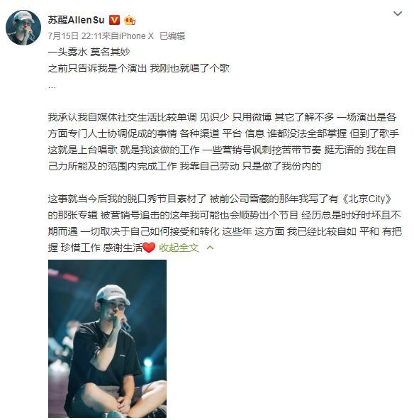 苏醒本人也一头雾水:我只是去走了个穴,我也是要恰饭的。