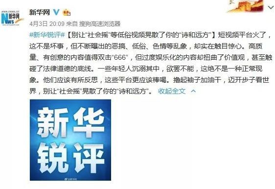 官媒说得好:别让“社会摇”等低俗视频晃散了你的“诗和远方”。这个道理,牌牌琦们应该还是没懂。