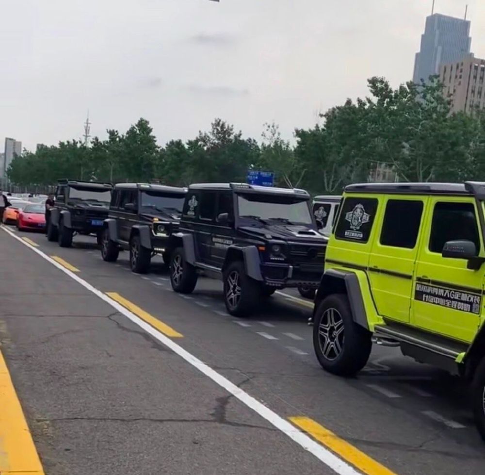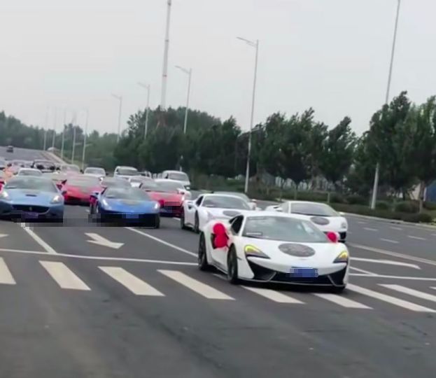 前段时间结婚的刘一手,也是同款豪车开道,10台奔驰大G,中间是超跑,最后方是劳斯莱斯,迎亲车队价值几个亿。