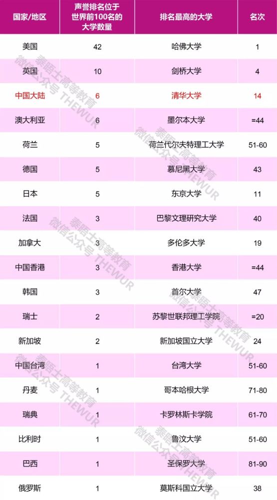 原标题:泰晤士世界大学声誉排名发布:中国大陆6所高校进百强