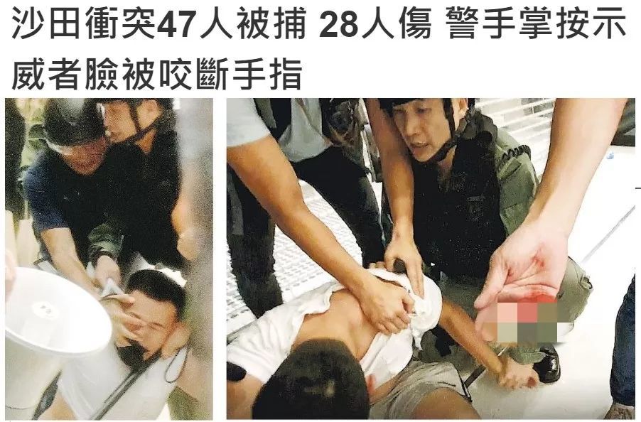 当晚,有13名警务人员入院接受治疗,其中一人的手指竟生生被暴徒咬断。