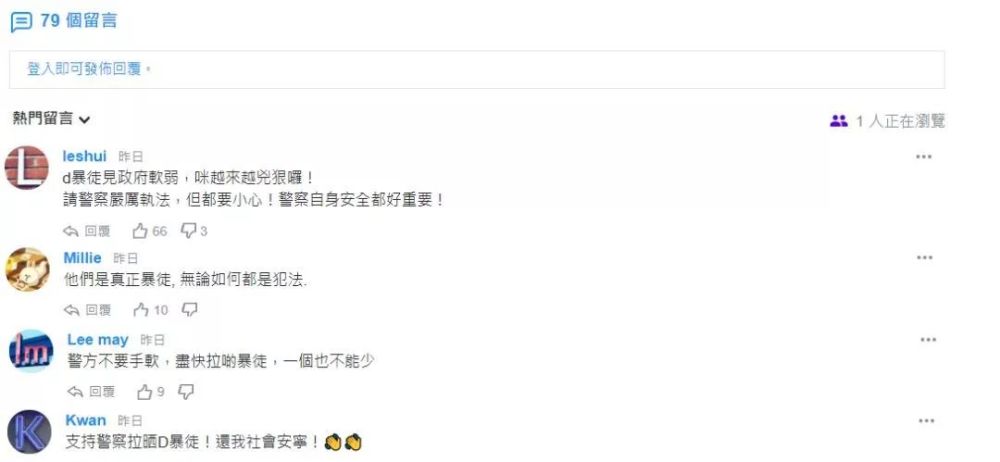 再看NOW新闻所发《沙田冲突 警方拘47人涉非法集结及袭警等》下面的评论。