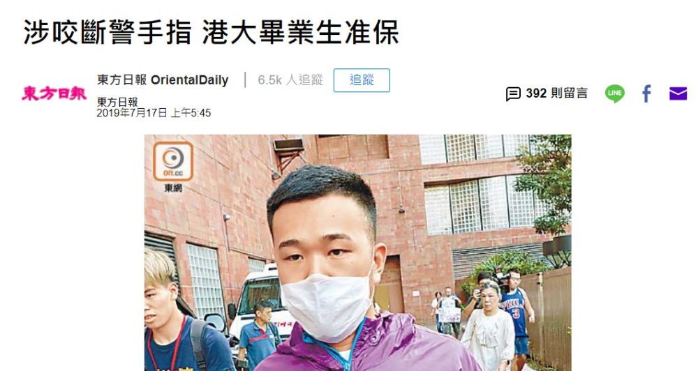 那么,这名咬断警员手指的港大毕业生被逮捕后,怎么样了呢?