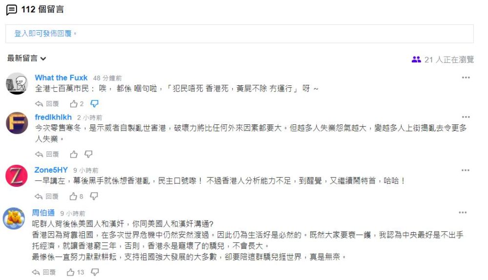 经咨询香港媒体朋友的意见后,岛叔这里选择具有代表性的Yahoo新闻(香港)为例,向岛友们展示下普通网民的看法。