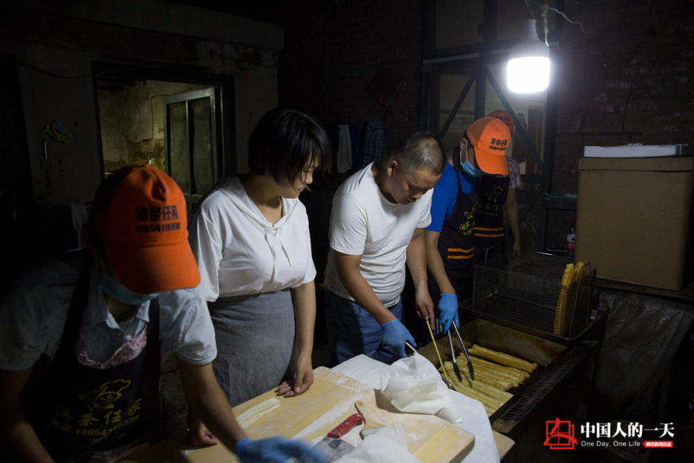 早上5点多,炸完油条的任晓猛在院子里用凉水冲了一把,洗去满脸的油烟,一旁的妻子体贴的递过来毛巾。