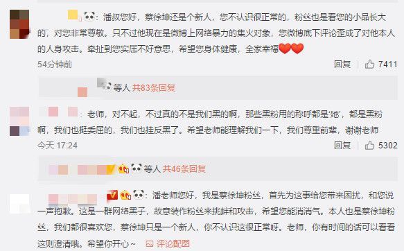 不少理智的蔡徐坤粉丝在潘长江微博下的留言