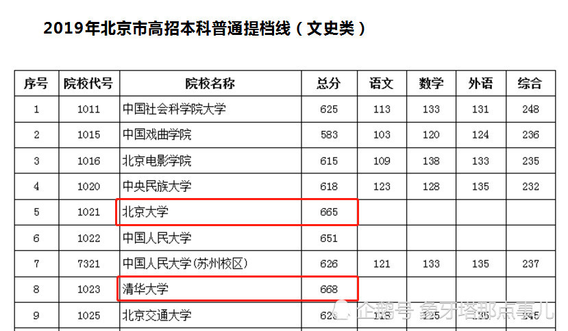 以实际数据为例,清华大学和北京大学理工类在北京市的投档线均为680分,这在全国范围来看,也应该是一个很高的投档线;而两校文科的投档线分别为668分和665分(清华稍微领先),分数也不算低。