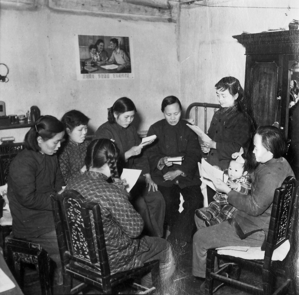1956年,东四区瓦窑胡同第六居民委员会成立了扫盲队。图为队员们在学习。冯文冈/摄