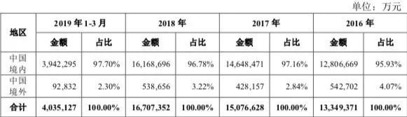 金龙鱼招股书显示,公司产品销售主要面向中国境内庞大的消费市场。2016年、2017年、2018年及2019年1-3月,金龙鱼在中国境内的营收占比分别为95.93%、97.16%、96.78%及97.70%。