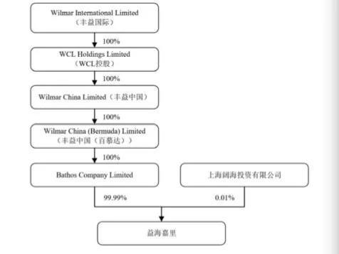 根据招股书,截止2019年3月31日,金龙鱼公司控股股东为BathosCompany Limited,持有公司99.99%股份,上海阔海投资有限公司持有公司0.01%的股份。而新加坡上市公司丰益国际依次通过WCL控股、丰益中国、丰益中国(百慕达)等三家投资控股型公司间接持有Bathos Company Limited100%权益。也即是说,金龙鱼背后的控股股东实为丰益国际。
