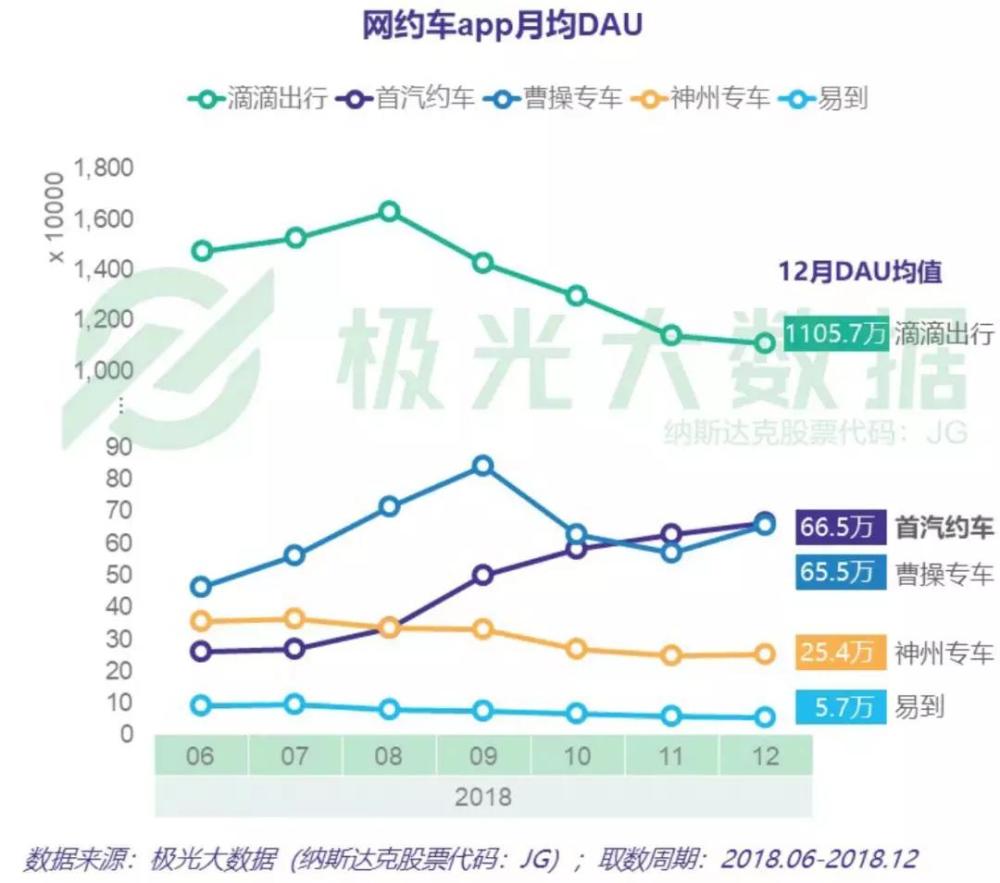 由安全问题引发的司机清退、运力承压、信任考验等一系列问题夹杂在一起,滴滴的月均DAU从稳步增长到直线下滑不过用了短短数月。极光大数据显示,滴滴出行月均DAU从2018年8月的1600万左右一路下滑至12月的1105.7万,4个月内下滑近500万。