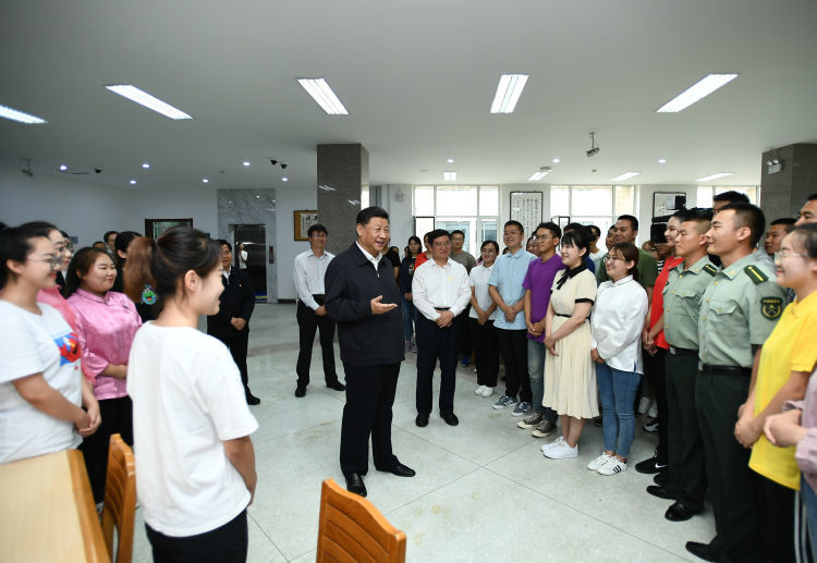 16日,习近平在位于呼和浩特市的内蒙古大学看望师生代表。