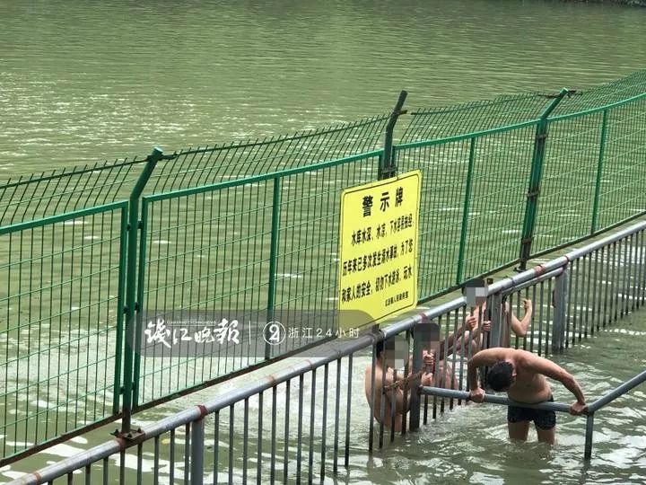 但这些警示牌和岸边护栏对胆子大的游泳者仿佛一点作用都没有。