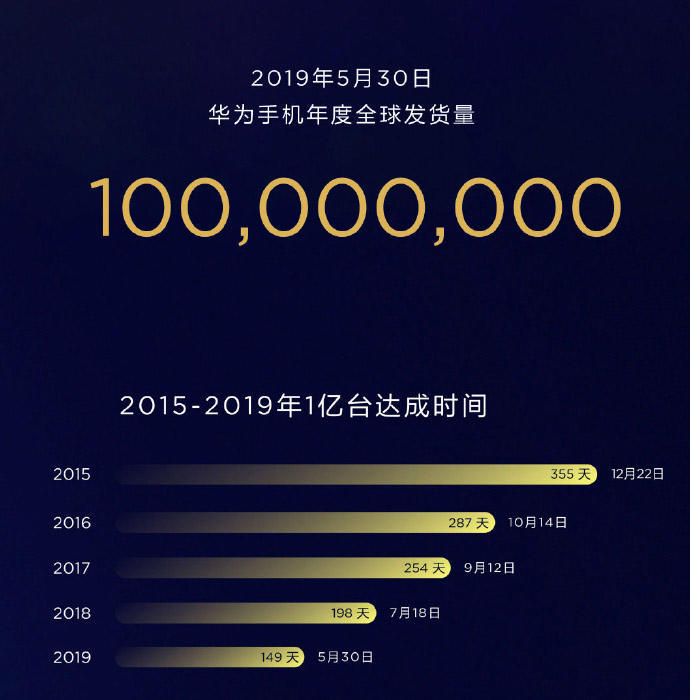 荣耀8X上市一年出货量超过一千五百万台;华为P30系列用时85天销量超千万台;截止5月30日,华为手机出货量超过1亿台,用时149天;6个半月出货量破1.3亿台。
