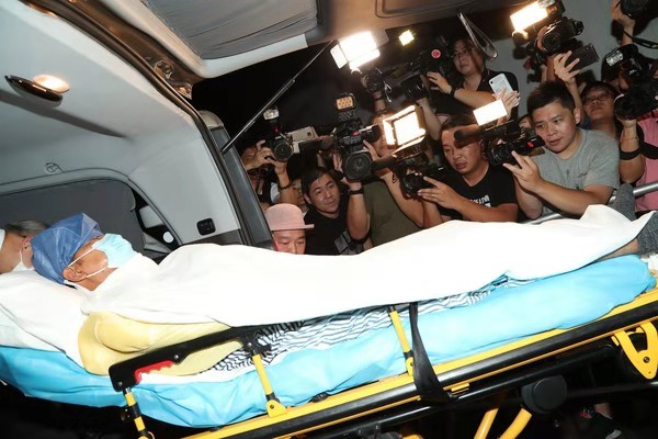 任达华深夜坐医疗专车返港,躺在担架上被送进医院,他戴着口罩及蓝色医疗帽,双眼紧闭养神,现场媒体和民众都对他加油打气,目前人在ICU病房(加护病房),霍汶希探视完任达华后表示,医生希望不要打扰他休息,所以先行离开,但有安排3名保安人员留在医院,而因为手指伤势比较严重,要等医生的检查报告出来后,再讨论要不要手术或腹部二度动手术。