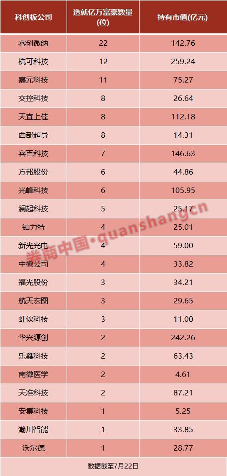更重要的是,截至收盘,科创板造就了125位亿万富翁,共来至23家公司。