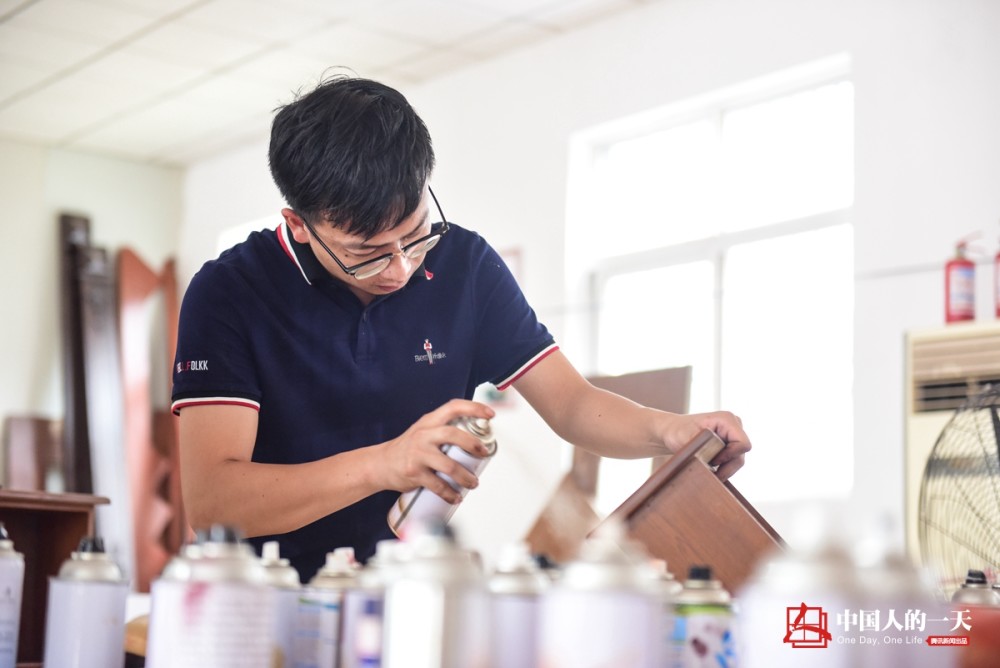 满打满算学了两个月,汪伟出徒了。或许是有匠人天赋,汪伟在家具修复这一行很快上道了。“别看我平时嘻嘻哈哈的,我做家具美容可是很认真的。那几年,当地有很多家具美容师,竞争挺激烈。为了让客户记住我,我特意在头上扎了个小辫子。”很多客户跟汪伟合作一次,就记住了:这个修家具的‘小辫子’手艺还不错。