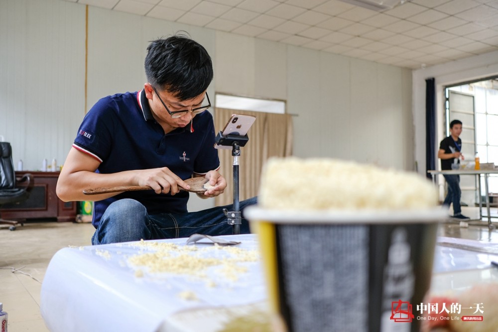 带着这样的想法,汪伟开始在短视频平台上发布他修复各种东西的视频。起初,他走的是传统路线,按照家具修复的路子,一板一眼地修复。“其实,修复家具用的都是特制的填充粉末,并不是方便面。所以,一开始看的人也不多。”用方便面这样的奇葩材料做修复,是2018年以后的事儿。为什么会用方便面修复东西呢?这个灵感来自于汪伟的一顿早饭。