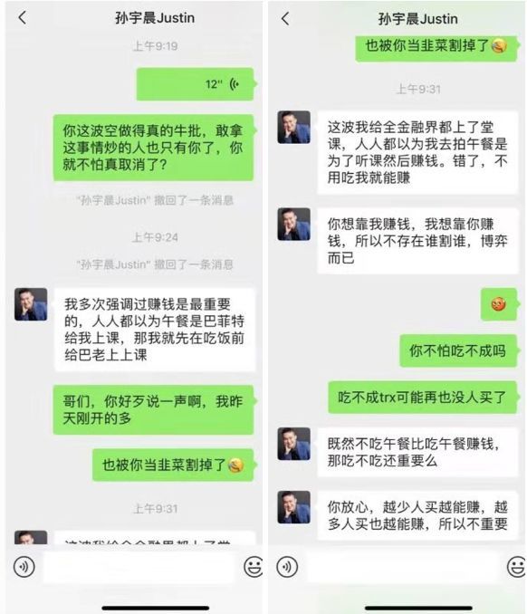 也就是在这时,两张疑似孙宇晨对话截图流出并疯传网络。