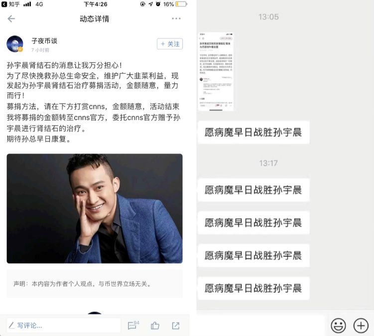 文中关于“孙宇晨目前仍在境内”的句子更是引发网友热议:“孙的抱病,不过是因为非法活动而被限制出境了。”Odaily星球日报记者已经收到了不少朋友圈的慰问:“孙老板是不是真的出事?。”