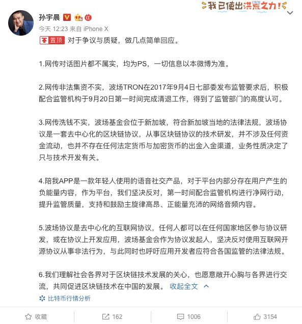 后来,孙宇晨再发微博辟谣,表示网传图均为PS;并澄清非法集资为不实传言。