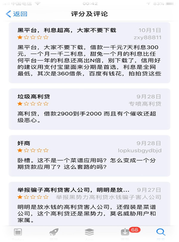 除了提取手机里的个人信息,为了逃避监管审核,贷款APP在设计上架时就设置了“AB”面。袁雪记得,她曾经下载的一款“甜兔”APP,进去之前,显示是“甜兔-美味菜谱”,介绍栏里也显示的是每日菜单精选,做菜教程等等。而注册之后,APP摇身一变成了贷款平台。