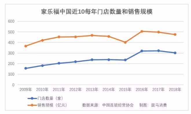 内部的混乱,危机事件的冲击,外加本土零售商和中国电商的崛起,家乐福逐渐失去了过往的辉煌……2009年,家乐福在销售额、单店业绩两项关键指标上被大润发大幅超越。当年家乐福单店业绩2.35亿,而大润发却达到了3.34亿;销售额方面,家乐福366亿,大润发是404亿。2010年,家乐福门店数量又被老对手沃尔玛超越。当年,由于业绩不佳,家乐福还第一次在中国市场主动关店。2011年,“中央五部委”整顿超市乱收费问题,禁止收取进场费、上架费等费用后,家乐福一半的利润又受到了影响。2012年后,家乐福中国业绩和利润,开始进入到双下滑的阶段。