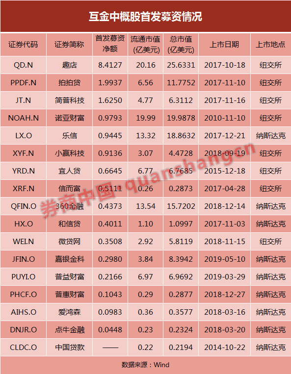 2017年下半年金融科技公司海外上市潮中,信而富(NYSE:XRF)、趣店(NYSE:QD)、和信贷(NASDAQ:HX)、拍拍贷(NYSE:PPDF)、乐信(NASDAQ:LX)等先后在美上市;去年3月,点牛金融(NASDAQ:DNJR)登陆纳斯达克;去年年中上市节奏暂缓后下半年再度潮起,去年7月,51信用卡在港交所上市;9月,小赢科技成功挂牌纽交所;去年11月,车贷平台微贷网登陆纽交所;去年12月,360金融在纳斯达克挂牌;今年5月,你我贷母公司嘉银金科登陆纳斯达克。