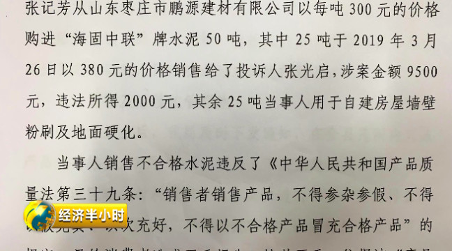 山东省枣庄市台儿庄区市场监督管理局稽查队长 马志强:我们通过询问当事人,同批次水泥200吨,其中50吨是销往河南省,剩下的150吨销往安徽、江苏等地区。