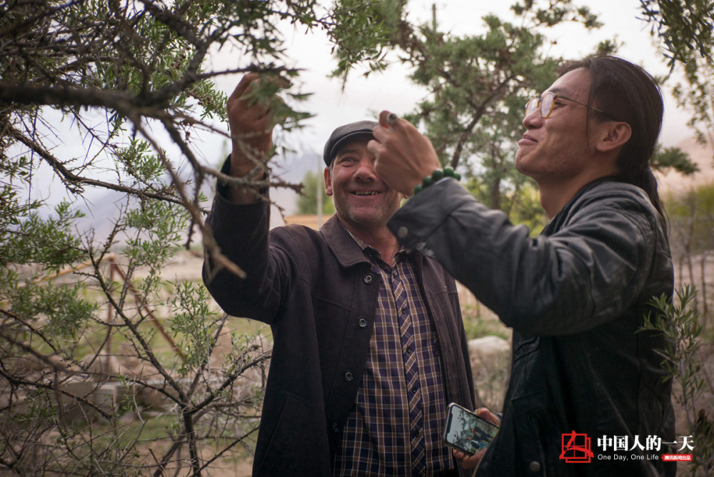沙棘树下,阿力甫给周大帅看刚长出来的嫩芽。为了开拓市场,在阿力甫的建议下,周大帅考虑同家中有沙棘的农户建立稳定的合作,每年由他们供应果子,这样就不用每家每户去预定了,直接与合作的农户联系,再由带头人下去摘果子。如今在塔县的乡下,提起野生沙棘,当地人就会联想到周大帅。