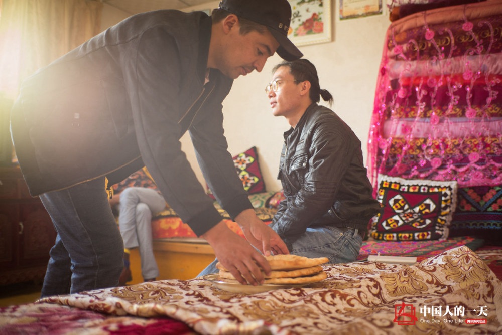6月20日中午,周大帅来到塔县提孜那甫村老朋友拜给克家中做客。拜给克读过大学,是当地的高材生,现在在畜牧局上班。热情好客是塔吉克族的传统,更何况这次不仅体现友情,还关乎生意,拜给克为周大帅准备了简单而丰盛的塔吉克式午餐——馕、酸奶和牦牛肉。