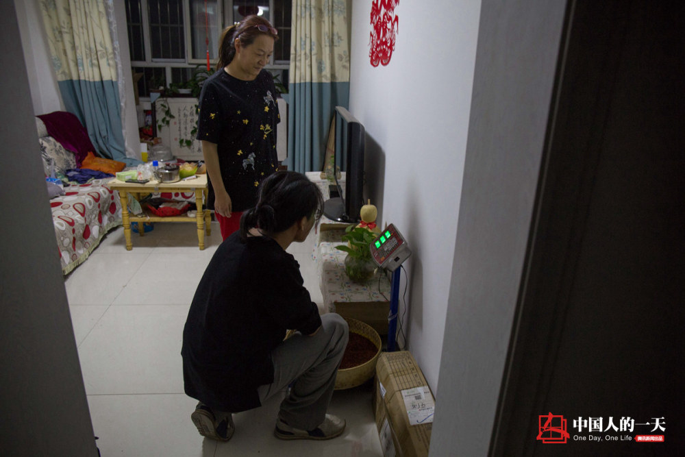 6月20日晚上11点,从塔县回到喀什的周大帅到一位阿姨家中取分选好的沙棘,处理最后一些库存。从高原运回来的沙棘毛货带着树枝、坏果,发货销售前要挑选两遍。周大帅将毛货的分选工作交给了一些退休后的阿姨去做,每公斤支付他们15元的毛货挑选费用。